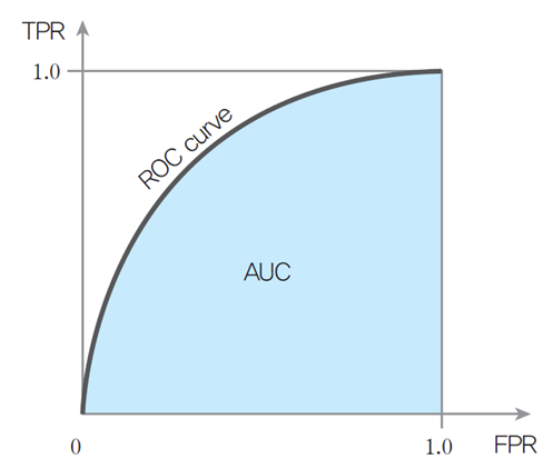 - AUC(Area Under Curve)는 ROC Curve의 면적, AUC의 값이 1일 수록 좋은 모델이라 평가합니다.