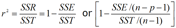 - SSR : 회귀제곱합(regression sum of squares)은 회귀식에 의해 설명되는 변동량 또는 편차제곱합입니다.