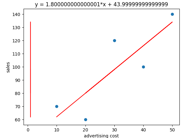 # 데이터 x는 광고비, y는 매출액, 광고비와 매출액에 대한 회귀모형