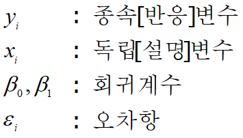 - 회귀모형(regression model) : 설명변수와 반응변수의 관계를 나타내는 직성식